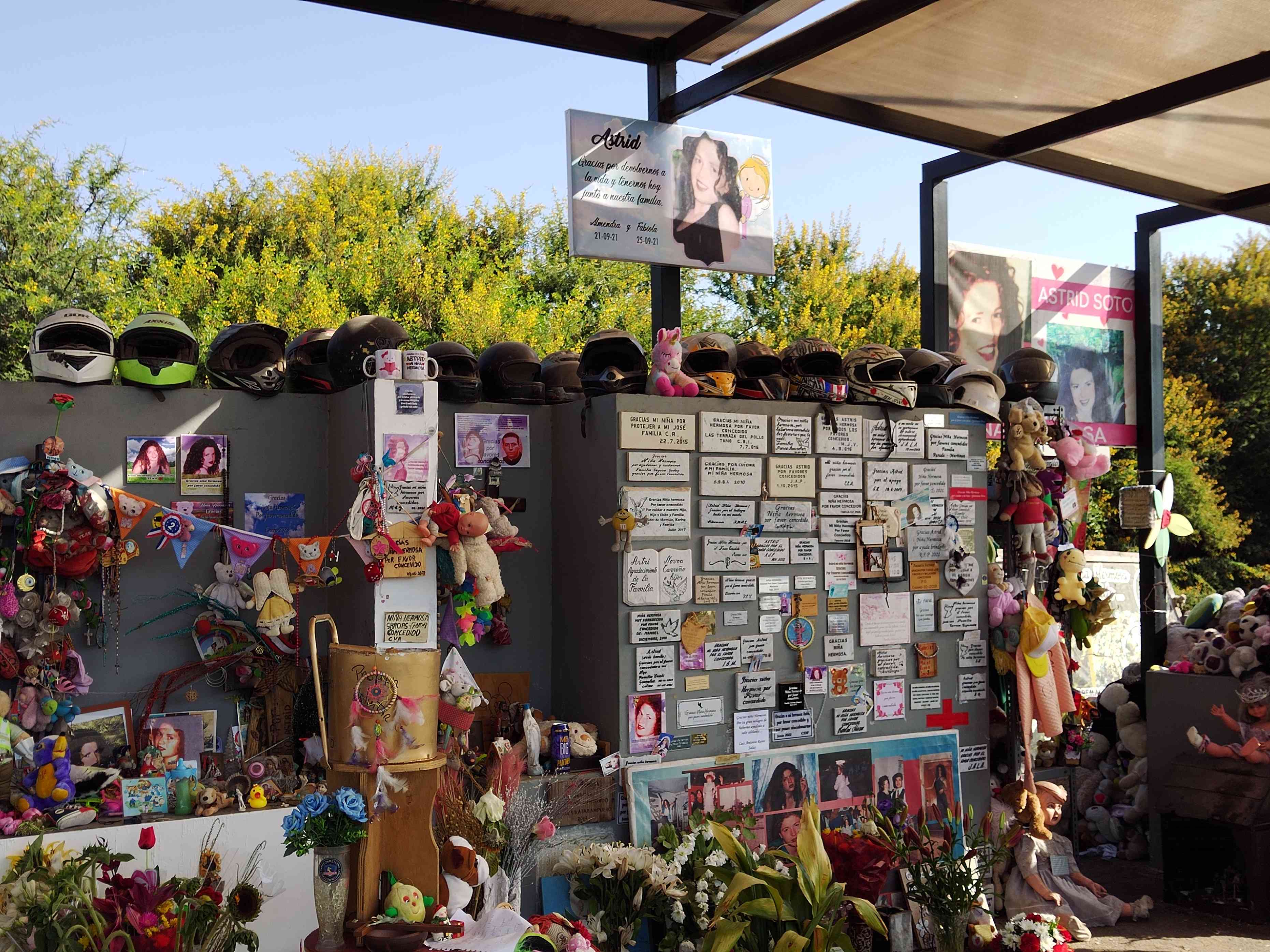 “Si alguien destruye la animita, ya sea por mala intención o por desconocimiento, se pierden los regalitos que le han traído a Juan José. Y esos regalitos tienen mucho cariño detrás. Se los han traído sus amigos, otros motoqueros o incluso vecinos que ni siquiera lo conocieron en persona, pero que quisieron dejarle algo. Todo eso tiene un bonito significado, algo muy personal. Por ejemplo, los amigos le han traído stickers de motoqueros, también le hicieron una cadenita que era de su moto y se la pusieron aquí. Si se pierde todo eso, se pierde. Ahora una vecina le hizo un dibujo, que lo vamos a enmarcar y poner aquí también”.