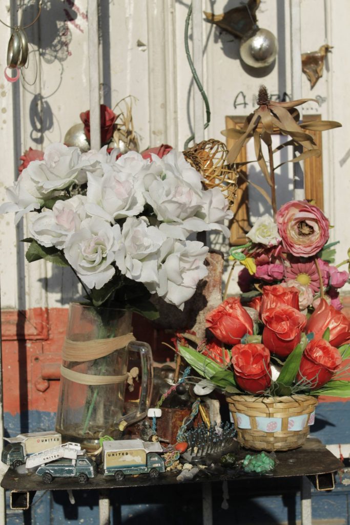 “Ah, veo que han traído flores frescas para Ámbar”, comento en voz alta. Don Danilo de inmediato me invitó hacia el altar y empezó a explicar. Las flores moradas y blancas las trajo una anciana el viernes, a quien él no conoce. Pero, según él, no es familiar de Ámbar. También quedaron un par de flores artificiales junto a él. Vi los restos de cigarrillos dejados junto a los tres pequeños autitos de juguete y algunos condones. Allí había exactamente tres colillas. Estaban pegadas (o habían sido pegadas) al altar con unas gotas de cera de vela. Me enteré de que estos cigarrillos se los fumó Ámbar, es decir, fueron traídos como ofrendas. Mencioné que ya había oído hablar de esta costumbre en el cementerio. Don Danilo dijo que también se suelen traer cigarros para Ámbar.